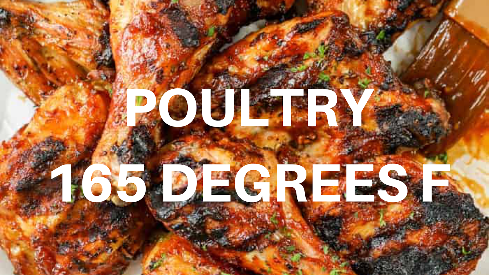 To be safe, most meats need to be cooked to an internal temperature of 145 degrees, and poultry cooked to 165 degrees. However, to get real tender barbecue you want a higher final temperature, at around 180 degrees. (See above photos for certain meat internal temperatures)